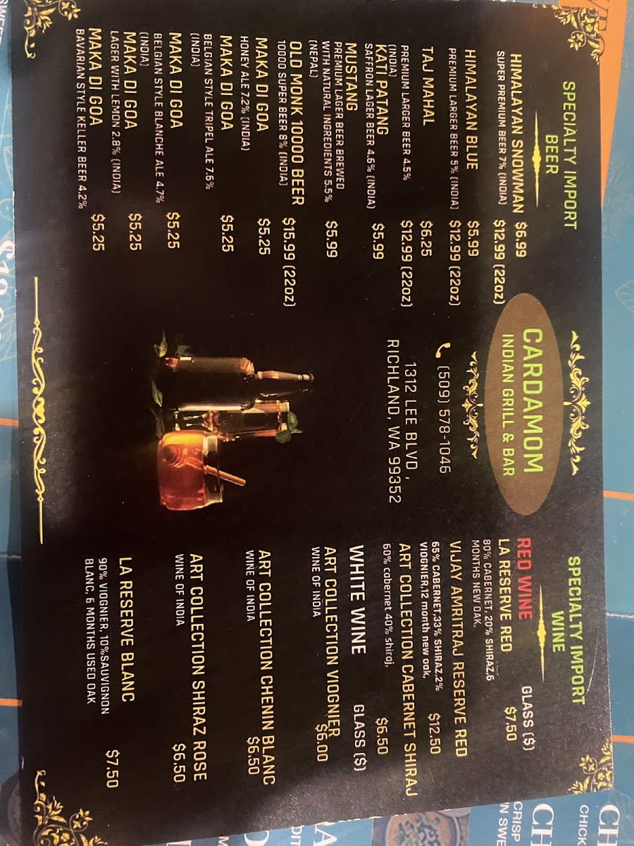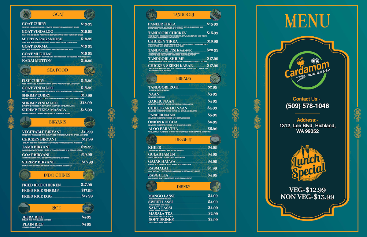 Cardamom Indian Grill & Bar Menu